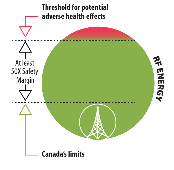 In Canada, Health Canada’s Safety Code 6 has large safety margins built in to provide a significant level of protection for the general public and people working near RF sources.