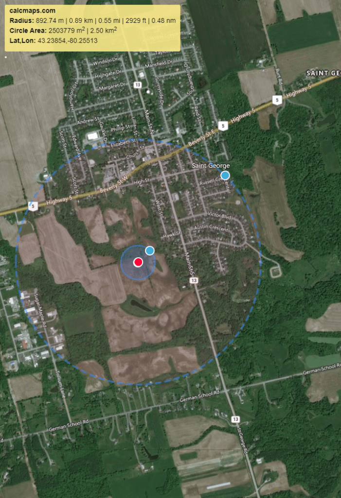My next location is more to the south east of town. And would mainly cover all existing houses and no future development. Also the downtown area is right on the edge of coverage without calculating elevation so those living here might still be out of luck. Also Fire and Thunder might need to find a new location again…